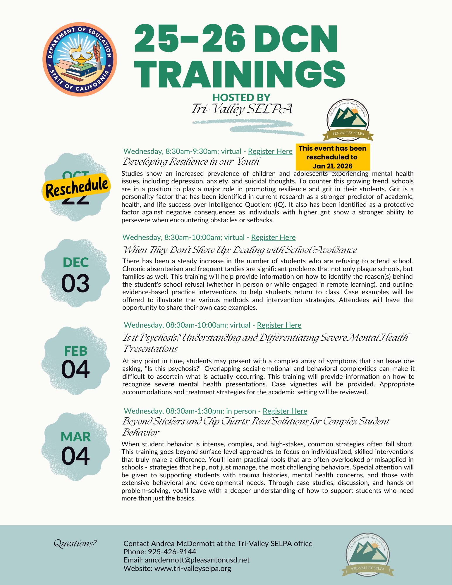 Questions? Contact Andrea McDermott at the Tri-Valley SELPA office.